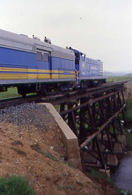 We proceeded east the last few tenths of a mile to the Rock River Bridge at Milepost 17.7, where Sierra Railroad 42 and train was posed on the bridge.