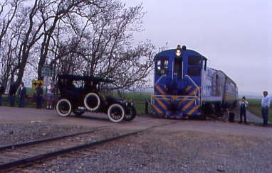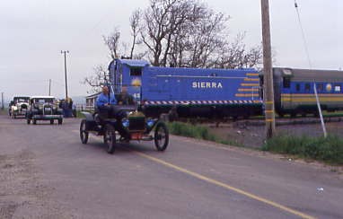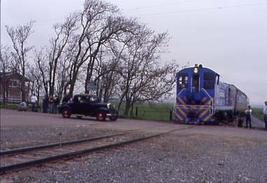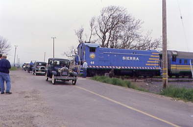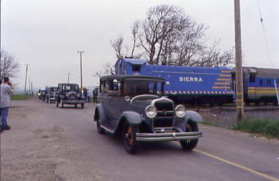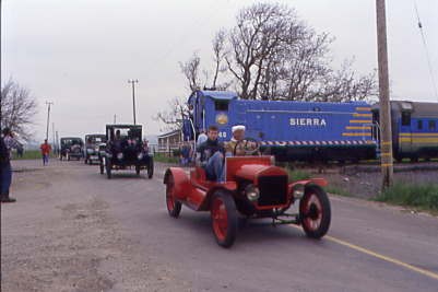 We were all surprised when a group of classic cars came rolling down Crabtree Road, only to be stopped by our train.