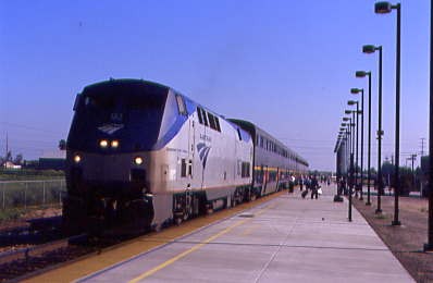 Homeward Bound 3/13/05After Ken bought trinkets for some friends, I drove California Highway 108 that turned into McHenry Avenue once we neared Modesto. Ken called Modesto Cab to get us a taxi to Amtrak but Enterprise gave me the wrong address of where we picked up the car. Remember, we were driven there so I did not need to know the address. We returned the car following their instructions that they had given me on Friday and once I had closed the gate, we discovered we had given the taxi cab company the wrong address. Ken re-called Modesto Taxi Cab and about ten minutes later, Cab 10 arrived with a fantastic driver who returned us to the Amtrak station with 32 minutes to spare. I tipped her $6.50 for her outstanding job and service she provided then checked the status of our train before going out to the platform and catching up on the story since Oakdale.