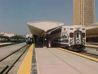 We took upstairs seats in the second coach for our trip to LAUPT, stopping at Santa Ana, Orange, Anaheim, Fullerton, Norwalk, Commerce and on into Los Angeles, arriving there early.