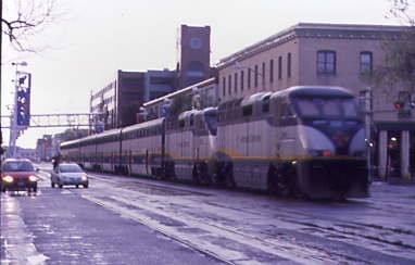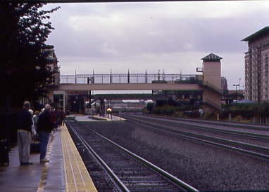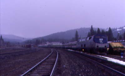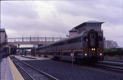 Eastbound Feather River Express 4/1/2006As the rain continued, I detrained to look for shelter and Chris went off so I would not be seeing him again as I met a few friends. I decided to relocate under the pedestrian bridge for more cover but it stopped raining so I moved to where my car would be stopping.
