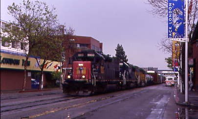 Union Pacific 5775 East rolled through Jack London Square. Knowing our train would be arriving, we relocated to the pedestrian bridge.