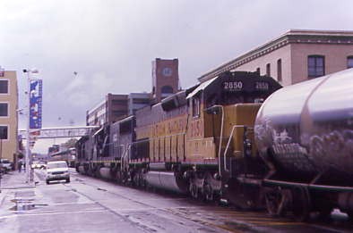 On the right is Quincy Railroad S1 4, nee Western Pacific 504, built by American Locomotive Company in 1942. It was sold to Sacramento Northern as their 405 in December 1967 and then to the Quincy Railroad in April 1973.