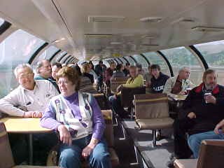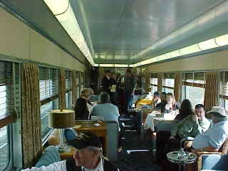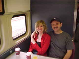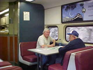 Randy Jackson, from Albuquerque, who had been with me on many Milwaukee Road 261 trips would share a table with me in the front café for the trip. I called Let's Talk Trains, the internet radio show, before we stopped in Sacramento where another large group of passengers boarded.