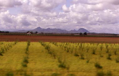 The Sutter Buttes before we had a slow order for water against the embankment, after which we proceeded to Oroville, where we picked up the final six passengers.