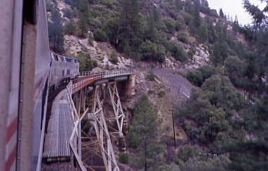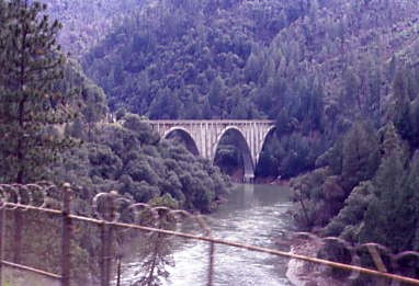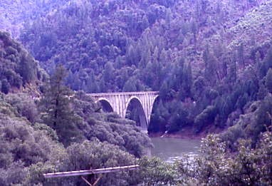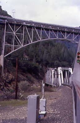 The North Fork Bridge. We were now following the North Fork of the Feather River and at Poe, a westbound Union Pacific freight was in the siding for our passage.