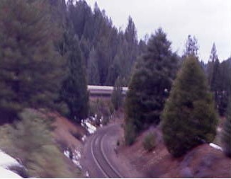 Our train on the Keddie Wye. I know this is a blurred picture, but since this was historical, I have kept it; sometimes my camera does not work too well in low light. The Feather River Express passed through Quincy Junction.