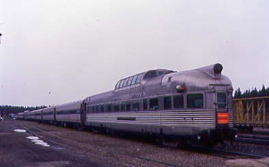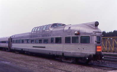 The rear of our train with "Silver Solarium" and its unique tail light. I started walking towards the locomotive when a Silver Toyota Highlander pulled up to me, with none other than Chris Parker at the wheel. He had taken the California Zephyr to Sparks, stayed at the Nugget Hotel and took a shuttle to Reno Airport to rent the vehicle. His new plan was to chase our train, return the car at Sacramento Airport and fly home. We stowed my luggage in his car then drove down to photograph my train at rest in Portola.