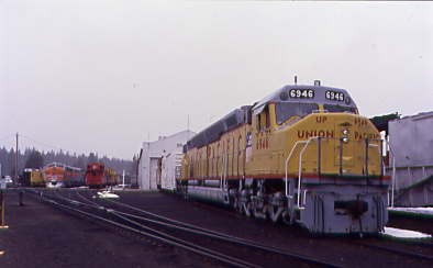 Union Pacific DD40AX 6946 built by Electro-Motive Division in 1977.