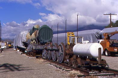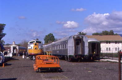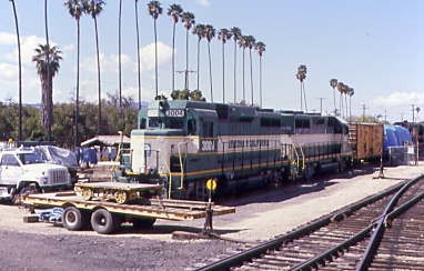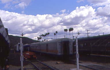 Passing the former Arizona & California locomotives with palm trees.