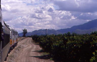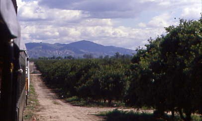 Rolling through orange groves.