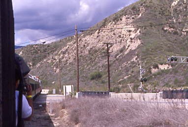 With our sandwiches in hand, the three of us reboarded the same trainset and again found a set of seats in the open car. Before we departed, the next train left bound for Piru.
