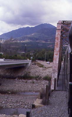 The Santa Paula Train at the truss bridge over Sespe Creek, after which we returned to the main highway exiting Fillmore in search of the Train to Piru.