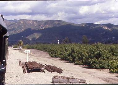 We then departed and at Castaic Junction, we left Interstate 5 for the twenty-mile drive to Fillmore. As we drove west, we looked for evidence of the former Southern Pacific right-of-way and passed through Piru and started scouting locations for the afternoon train's run from Fillmore to Piru.