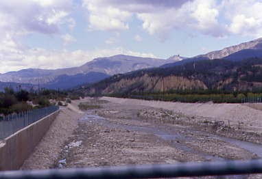 Curving towards the mountain range to our south.