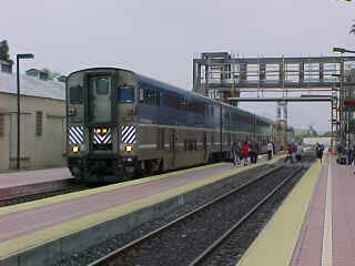 The train arrived and I boarded the lower level of the cab car for the trip to Fullerton. We went by Anaheim, but at Fullerton Junction, had to wait for a BNSF piggyback train with plenty of UPS trailers, as well as Metrolink's display train, to enter the siding at Fullerton. I stepped off and went straight upstairs for a pair of pictures.