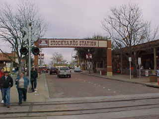 The Stockyards Station sign. The arrival of railroads in 1876 made the area a very important livestock center. Fort Worth Union Stockyards opened for business on January 19, 1890, covering 206 acres. On February 7, the Fort Worth Dressed Meat and Packing Company was founded. This facility was operated without profit until purchased by G. W. Simpson of Boston. In an effort to produce revenue, they reached out to the Swift and Armour companies to establish packing houses. By 1886, four stockyards had been built near the railroads.