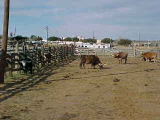 Some longhorn cattle in their pens before I went to wait for my next train ride.