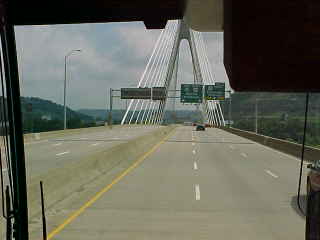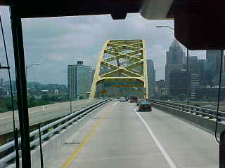 A railroad bridge parallels the highway bridge. About six miles of West Virginia took us in to Pennsylvania and we took Pennsylvania Highway 60 north to the airport; this route was exactly the same one I suggested Chris take. We did it in one hour and forty-two minutes. After dropping off three of our passengers at the airport, we made our way to Amtrak's Penn Station via Pennsylvania 60 south towards downtown.