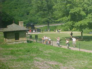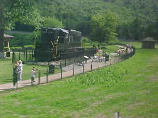 After we left Johnstown, I spotted the Incline there. After that, my train climbed the western flank of the Alleghenies and we passed through Cresson and at MO Tower, I passed the 942,000.0 rail mileage mark. We took Track 1 through Gallitzin so I missed going by the Tunnel Inn then we passed through the South Allegheny tunnel before starting down the eastern flank and a few minutes later, rounded Horseshoe Curve.