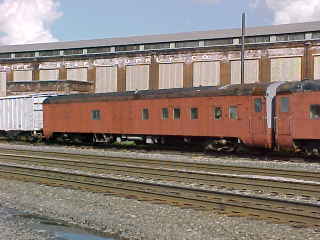 Amtrak sleeper-lounge-observation "Eaton" PPCX 800174, ex. Illinois Central Gulf instruction car 15, exx. Illinois Central instruction car 15, exxx. Illinois Central parlour-observation 3310 "Mark Beaubien", nee Illinois Central coach 2189 built by Pullman Company in 1916. After World War II, the Illinois Central sought to modernize its trains and modified the car at Burnside Shops into a parlor-drawing room car for use on The Daylight, a fast train from Chicago to St. Louis. At that time the car was named "Mark Beaubien" and numbered 3310. Mark Beaubien was one of the founders of the City of Chicago and ran the well-known Sauganash Tavern. He owned the land under what is now the Chicago Loop.
