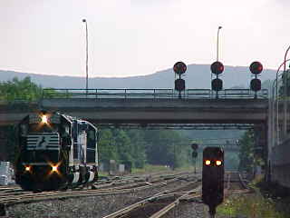The eastbound met a local that would turn off the mainline just west of the station.