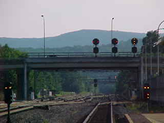 A green signal meant our train might be on the approach. Around a curve a headlight appeared and my westbound train arrived and my stay here was over.
