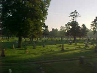 We passed a graveyard east of Maple City, Indiana before freight train congestion stopped us before Elkhart.