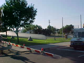 The wind turbine blade in Lamar now blocks the good view of the steam engine that had been on display there for years. "The Eyes of Alice Cooper" started this day off musically and later we arrived into a very hot La Junta at 8:20 AM, where I detrained for some fresh air during our crew change.
