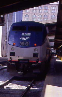 The Pennsylvanian after I detrained. I then called Chris Parker to see if he arrived home safely but left a message and met Rolf from Santa Cruz, who was taking the California Zephyr from Chicago tomorrow. He had an adventure when he came to the NRHS convention since his California Zephyr was four hours late arriving in Chicago so he had to take a Greyhound bus to Pittsburgh, a trip from Hell, but made it to the NRHS bus for the convention. We chatted in the station before we went up to the platform to wait for our train to Chicago to arrive.