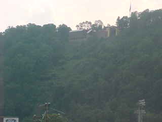 The westbound train arrived at 6:30 PM {4:06 PM}. There would be no picture of the Horseshoe Curve westbound as we were on Track 3 and had a triple meet with two eastbounds on the curve on Tracks 1 and 2. Being on Track 3 was good news as I was able to travel both routes through Gallitzin and would pass the Tunnel Inn. Between the curve and tunnel, two more eastbounds had gone by and when we reached the Tunnel Inn, no one was out to look at our train, which consisted of P42DC 42, coaches 21211, 25040, 25060 and 26020 with café/business 48154. I acquired the consist while walking through the train to get a hot dog for dinner.