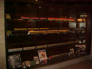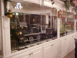 .Display of trains in cases near the Amtrak ticket window before I returned trainside.