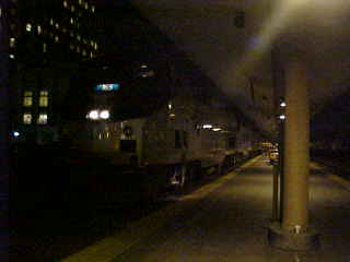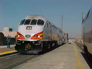 My TripI drove to the Santa Ana station and parked in the north parking lot then inside, saw Marti, my excellent night-time Amtrak agent, to whom I gave my parking permit for my car's stay of over 72 hours. I then met Pat Moran, along with her friends Irene and Ruth, who had delivered Pat to the station for the journey to La Plata. Pat then exchanged her tickets so she could leave Los Angeles with me before we stopped by the car and I picked up my luggage then walked to the Santa Ana Boulevard grade crossing to reach the east platform without having to use the new bridge. About fifteen minutes later, a southbound Metrolink train for Irvine arrived before we heard the horn of our train.