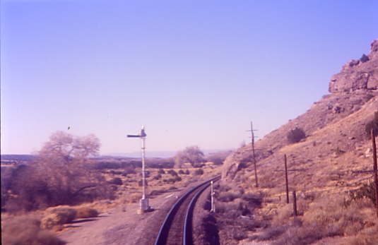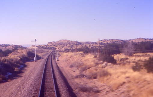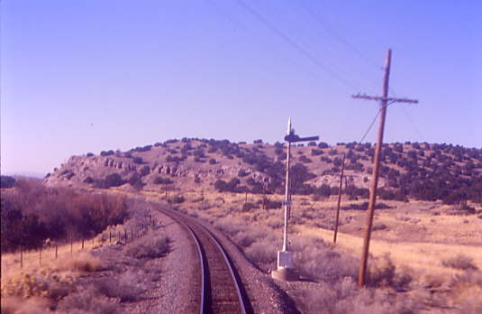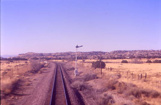 The remaining semaphores that I had not captured until now, which were the four that are just west of Lamy, after which I went to the lounge car for the climb through Apache Canyon and the meeting of the westbound Southwest Chief at Canyoncito. I returned to the room to obtain a dinner reservation for four at 5:45 PM, before going back to the lounge car for an afternoon of conversation.