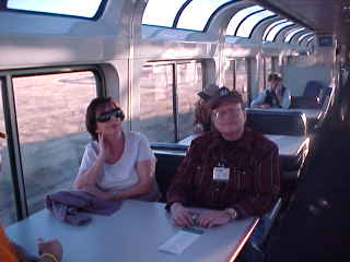 Tom Anderson, Ken Ruben and Pat Moran enjoying the view from the Sightseer Lounge Car this fine early December day as we entered New Mexico.