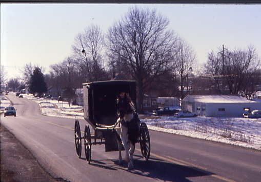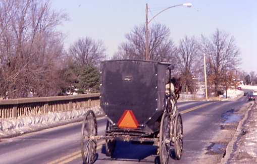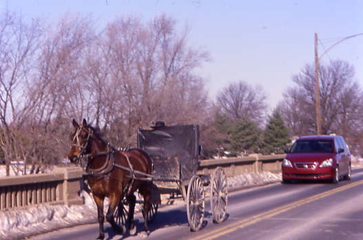 We passed another Amish buggy as we drove toward the grade crossing.