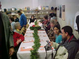 Our group waiting for dinner. Those of us leaving on Amtrak were served first.