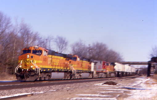 BNSF 5432 West then came through, passing the location where the former Wabash Railroad crossed over the Santa Fe. The new train watcher's tower will be built on the north side of the tracks on the former Wabash grade.