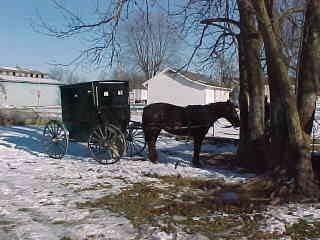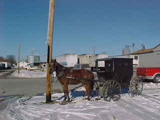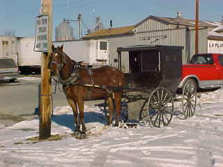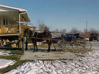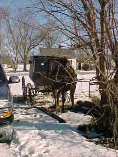 Out in front of the Amish store, another buggy pulled in and the owner went inside.