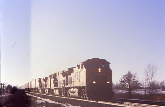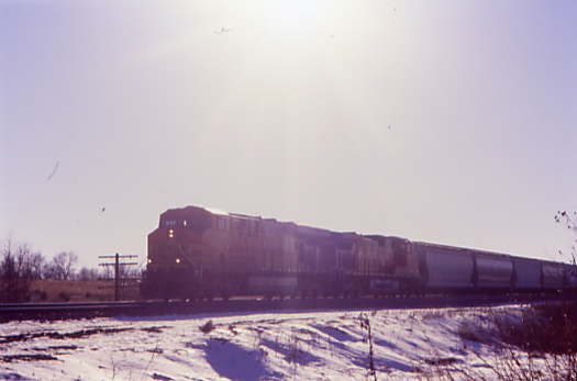 On the way to that train, we passed a field of cornstalks which we photographed on our return. This led to an impromptu snowball fight. I must say that being from Southern California, we all could use a lot of practice at the art of making and throwing snowballs. We heard another horn from the west and this time, made it back to the crossing.