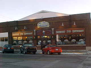The Red Rooster Restaurant which on the other side of the Bank of La Plata, two doors down from the Depot Inn and Suites.