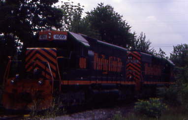 Akron Barberton Belt SW1200 1203, ex. lease to Nimisila and Tuscarawas Railroad 1203, exx. Norfolk and Western 3375, exx. Wabash 3375, nee Wabash 375 built by Electro-Motive Division in 1954 and Wheeling and Lake Erie GP35 2699, , nee Southern 2699 built by Electro-Motive Division in 1965.