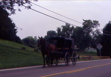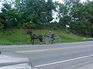We drove over a hill and guess what we saw coming the other way - an Amish horse and buggy. A non-covered buggy means the male driver is single. Over the next few miles, we had four more buggies which Chris videotaped as he drove with a big smile on his face. My favorite moment was in Mt. Eaton when we stopped at a red light. First a truck went through on the green light, followed very quickly by another Amish horse and buggy. After Mt. Eaton, we passed through a rain shower as we turned onto Interstate 77 before stopping at the Warthers Carving Museum in Dover.