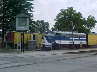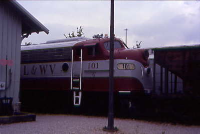 Lorain and West Virginia E8A 101, ex. Wisconsin and Southern 801, exx. Metra 522, nee Chicago and North Western 5021B built by Electro-Motive Division in 1950. It was acquired by the railroad in 1997 then was repainted and upgraded for high speed operation in 2002.