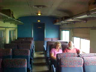 The interior of the coach, with two visitors, Greg and Deb, enjoying their experience.