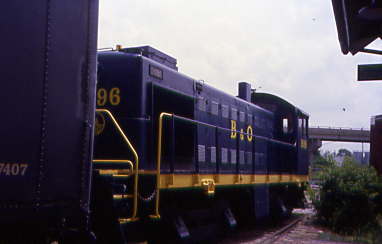 Baltimore and Ohio S-4 9096 built by American Locomotive Company in 1956 and Norfolk and Western steel caboose 518397 built by the railroad in 1927.
