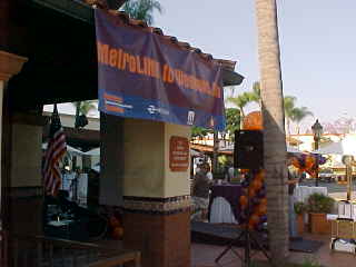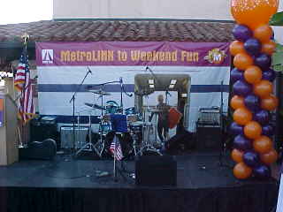 At the front of the station was a stage and balloons for the 9:00 kickoff celebration. We found Winston Walker and his daughter Christy then watched Pacific Surfliner 763 arrive. Our Pacific Surfliner had left Los Angeles twelve minutes late but arrived only nine minutes late.