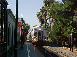 Jim Nowell was waiting at the door and we chose three seats of a four-seat combination, as well as the two seats right behind on this very crowded train. We stopped at Irvine then slowed for Pacific Surfliner 565 before passing through Mission Viejo then arrived at San Juan Capistrano, where we all detrained and I helped Jim buy his Metrolink ticket.