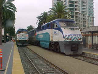Pacific Surfliner 562 and the rear of Coaster 635.