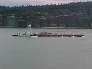 As we were waiting, an Aquaculture Transport barge was on its way west. A pair of Union Pacific freights kept Chris and I entertained.
